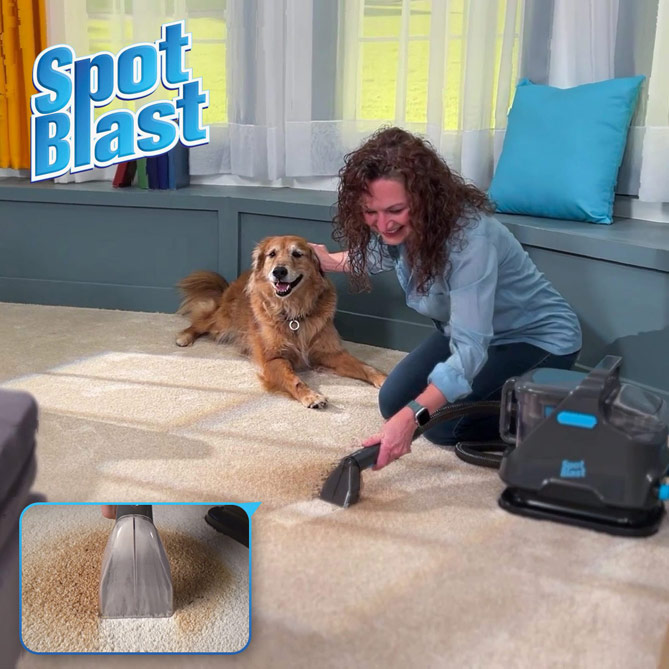 Mantener tu casa sin manchas ni suciedad es complicado, ¿verdad? No te preocupes más, con Spot Blast podrás limpiar rápidamente tus alfombras, moquetas y demás tejidos rápidamente y sin esfuerzo. Su secreto es una limpieza extrema 3 en 1: sólo tienes que humedecer, cepillar y observar cómo las manchas desaparecen como por arte de magia. Su triple acción limpiadora, fregadora y aspiradora elimina rápidamente las manchas y marcas más difíciles, desde lo más profundo hasta la superficie. Y como es portátil, podrás moverlo por todas partes e incluso llevarlo al coche para limpiar la tapicería. Es la solución que estabas buscando.