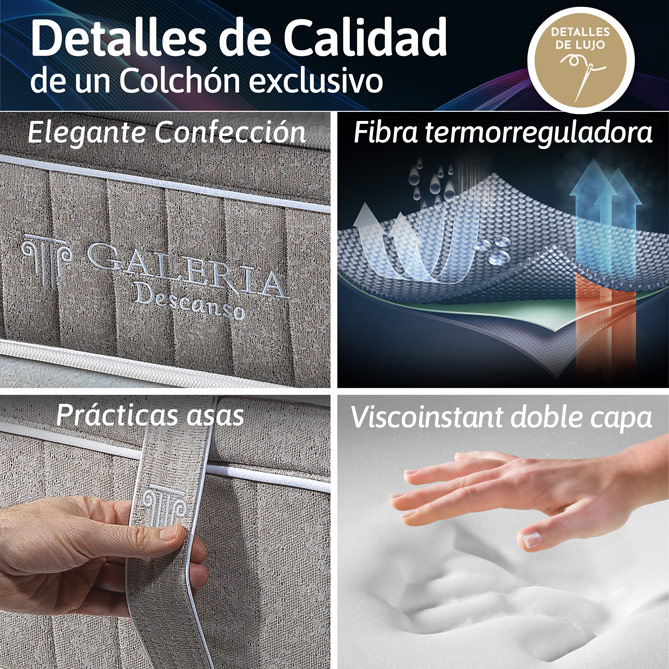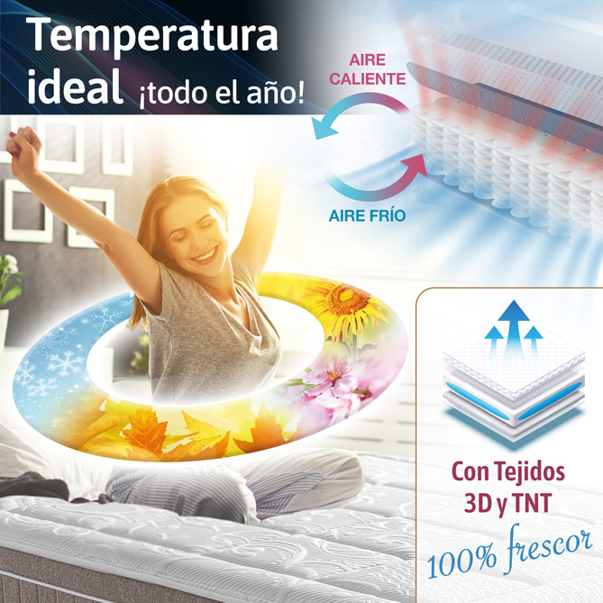 Los expertos confirman que la postura al dormir influye en la calidad del sueño y en el bienestar general. Por eso, para descansar “de verdad” y levantarte sin molestias en el cuello o la espalda, necesitas un Colchón “personalizado” que se adapte a ti. Como ELITE ZERO GRAVITY, desarrollado por el Instituto Europeo de Calidad del Sueño (ESCI) con los últimos avances en ergonomía. Para empezar, tiene 5 zonas de descanso diferenciadas, con mayor firmeza donde tu cuerpo lo necesita, que distribuyen tu peso de forma natural y cuidan tu salud postural... Además, su innovador núcleo de Muelles Ensacados ofrece máxima transpirabilidad para una temperatura perfecta todo el año y libertad de movimientos ¡sin molestar a tu pareja! Supercómodo, fabricado en España con materiales de Alta Gama y 30 cm de grosor, disponible en todas las medidas y con Almohada/s de Regalo, ELITE ZERO GRAVITY se ajusta a tus necesidades de descanso. Cuando lo pruebes, ¡no querrás dormir en otro Colchón!