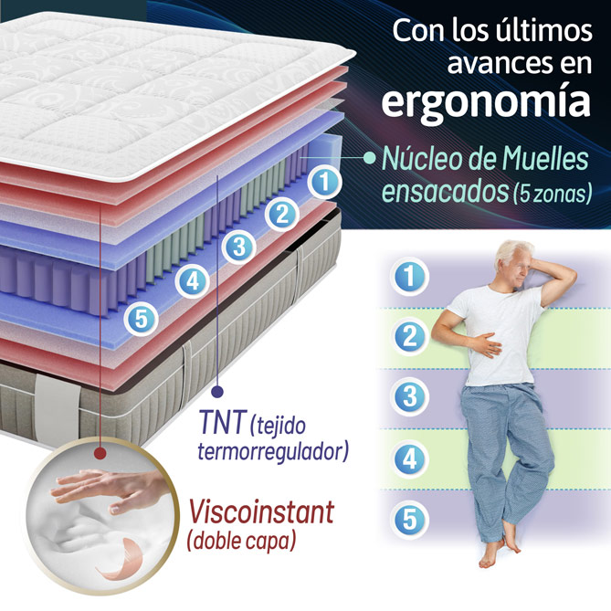 5 zonas de descanso diferenciadas: el Colchón ”inteligente” que se adapta a ti ¡como un traje a medida! ¡Consíguelo ahora con un 50% de descuento!